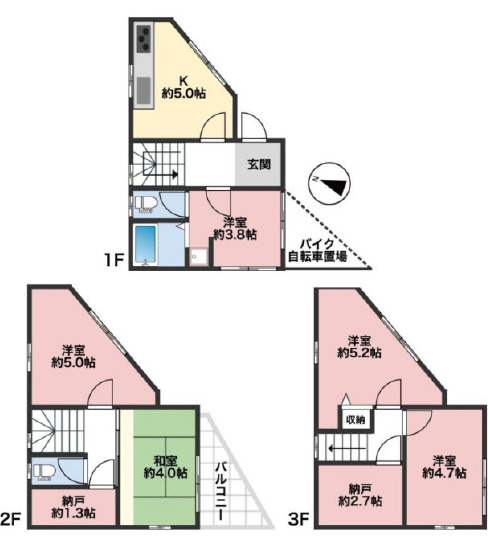 バストイレ別 フローリング システムキッチン 駐輪場 バルコニー