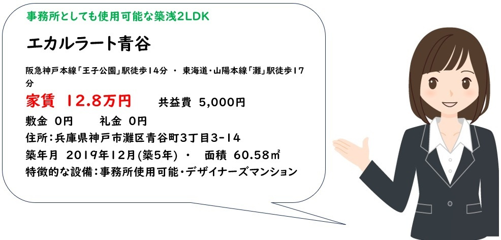 築浅デザイナーズ2LDK。事務所使用可能な『エカルラート青谷』