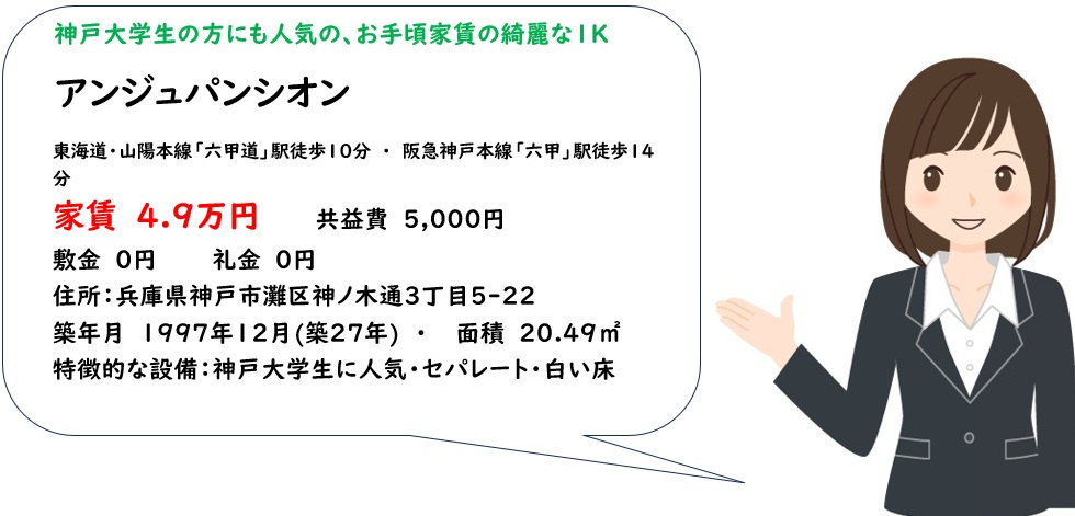 神戸大学生にも人気のキレイなセパレート1K『アンジュパンシオン』