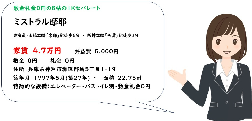 希少なペット飼育可能物件の敷金礼金0円の1K『ミストラル摩耶』